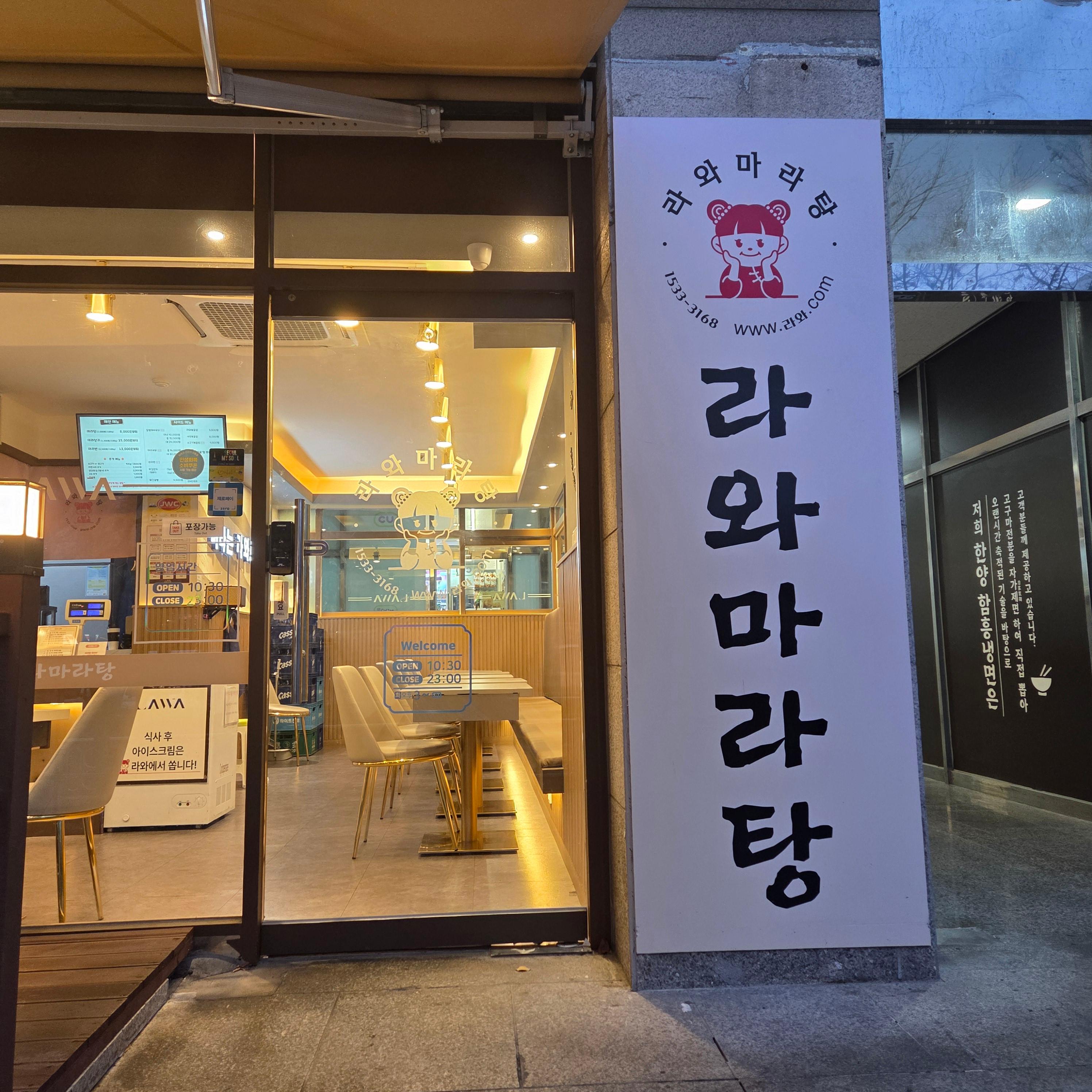 방화역 1번 출구에서 1분. 접근성 최고인 라와마라탕 방화역점에 다녀왔습니다. 매장은 밝고 넓으며 중앙에 셀프 재료 코너가 있어 원하는 재료를 담아 무게로 결제하는 방식이에요. 재료 종류가 많아 고르는 재미가 있고, 위생 관리도 잘 되어 있었습니다.